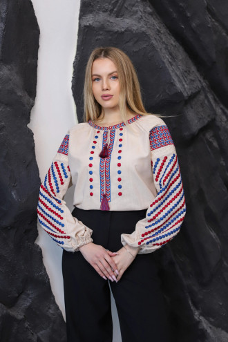 Embroidered shirt "Zlagoda" in light beige color with blue and red ornament