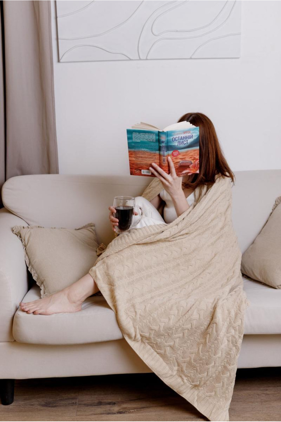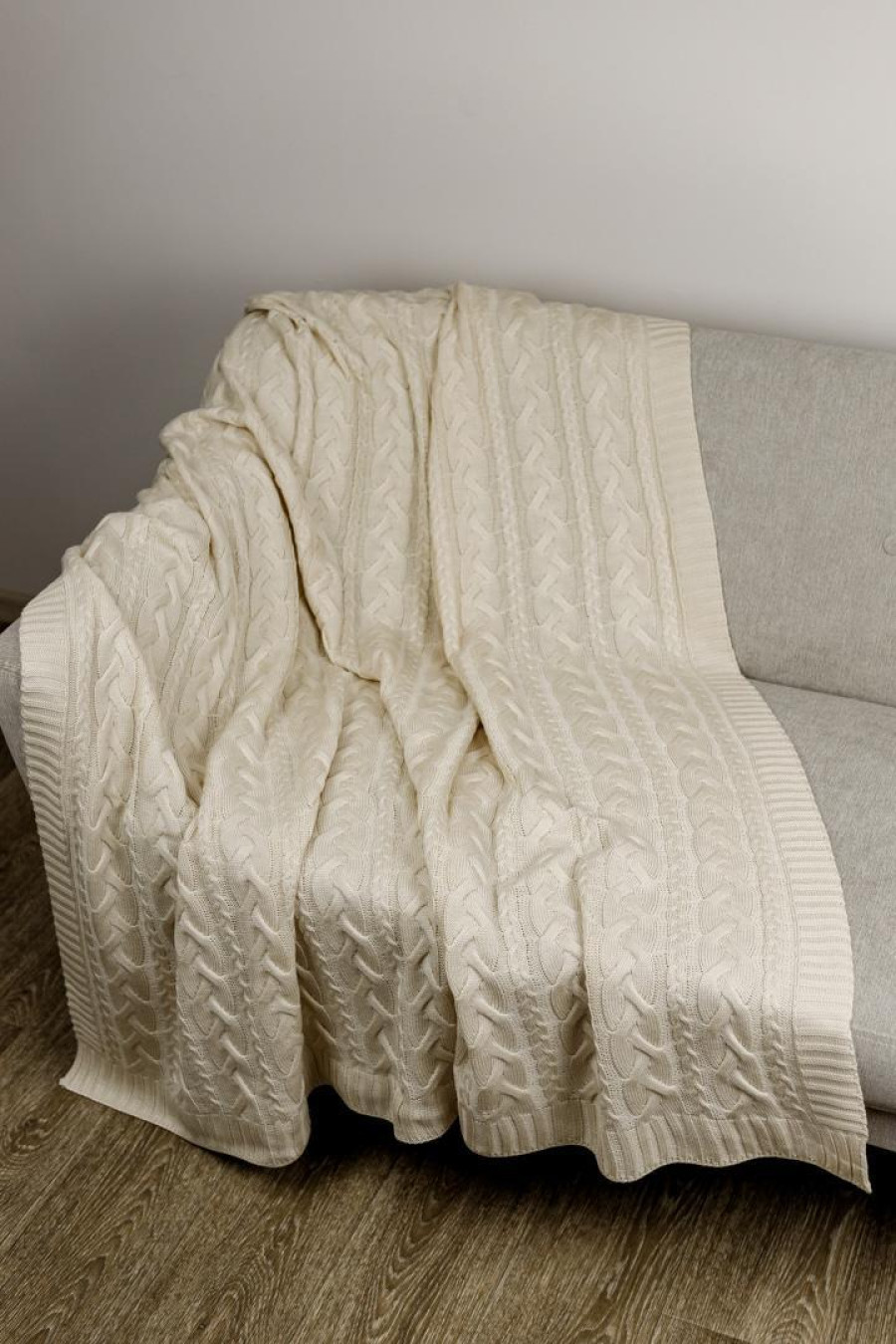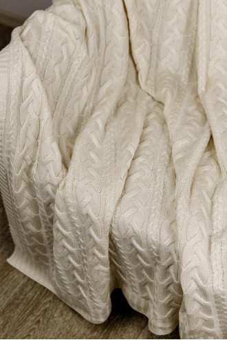 Comfortable warm knitted blanket made of soft acrylic yarn in the color of baked milk with a voluminous braid pattern. The product will give you a feeling of warmth and comfort in the cold season, will add complete harmony to the home interior. The blanket will be a good gift for a special event or holiday, or simply a "warm souvenir" for cool days.