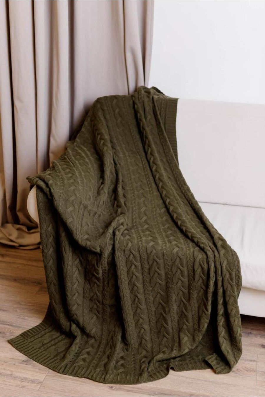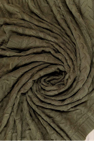 Warm knitted blanket made of soft acrylic yarn, pleasant to the touch, dark olive khaki color with a voluminous braid pattern. The product will give you a feeling of warmth and comfort in the cold season, will add complete harmony to the home interior. The blanket will be a good gift for a special event or holiday, or simply a "warm souvenir" for cool days.