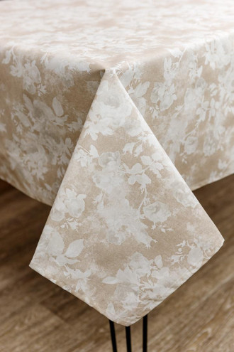 Festive tablecloth made of water-repellent cotton fabric in beige-coffee color with an abstract floral pattern in white-milky tones. The tablecloth will add elegance to the festive interior and goes well with any tableware. The product can be in several size variations and is suitable for both a small table and a large dining table for the whole family. It will be a good holiday gift for your friends and loved ones.