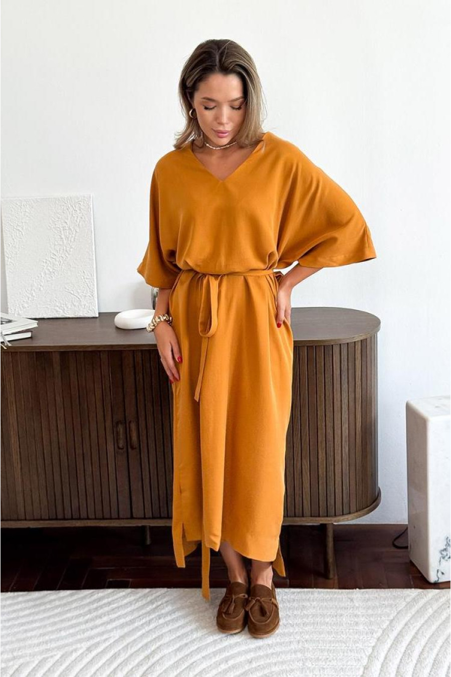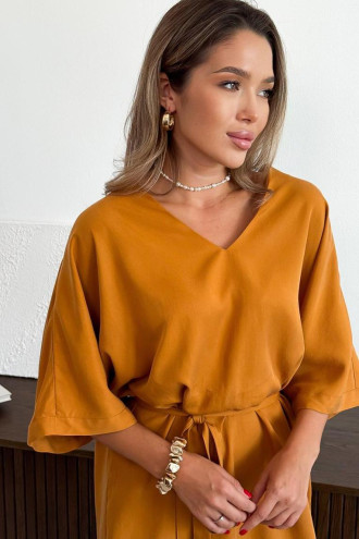 Dresses made of eucalyptus fiber are a great choice due to the combination of naturalness, high hygroscopicity and pleasant to the touch texture. The model has a free silhouette that creates a relaxed and modern look. The loose sleeves add lightness and comfort in movement, emphasizing the relaxed style of the product. The length of the model is asymmetrical, which gives the dress dynamics and visual lightness. The set includes a belt that can emphasize the waist. Such a dress can be combined with sneakers or sandals for every day, or with heeled sandals for a more festive look.
