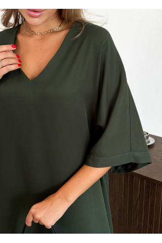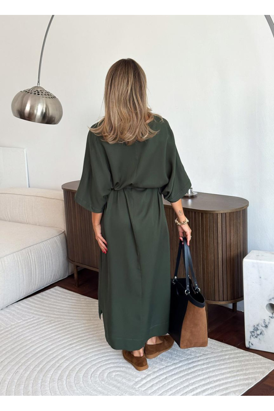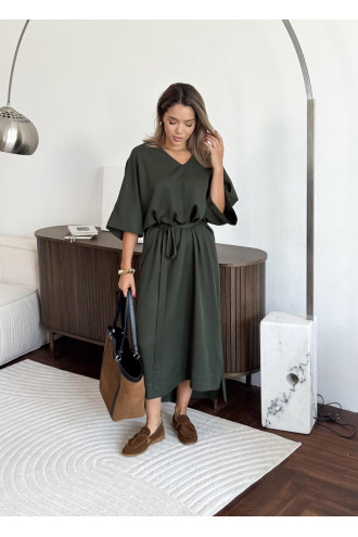 A dress made of eucalyptus fiber is a great choice due to the combination of naturalness, high hygroscopicity and pleasant to the touch texture. A model with a free silhouette that creates a relaxed and modern look. Loose sleeves add lightness and comfort in movement, emphasizing the relaxed style of the product. The length of the model is asymmetrical, which gives the dress dynamics and visual lightness. The set includes a belt that can emphasize the waist. Such a dress can be combined with sneakers or sandals for every day, or with heeled sandals for a more festive look.