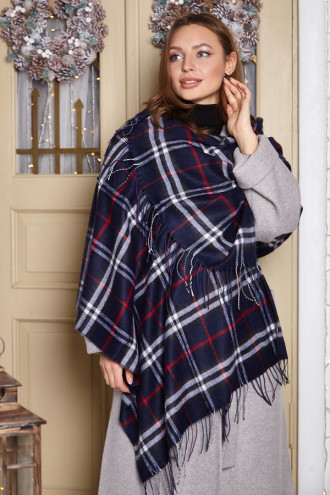 Cashmere stole "Barber" looks stylish and cozy. The model is made of soft, pleasant to the touch fabric, made in a classic large check. The main color is deep dark blue, complemented by white and red lines that create a spectacular contrast.