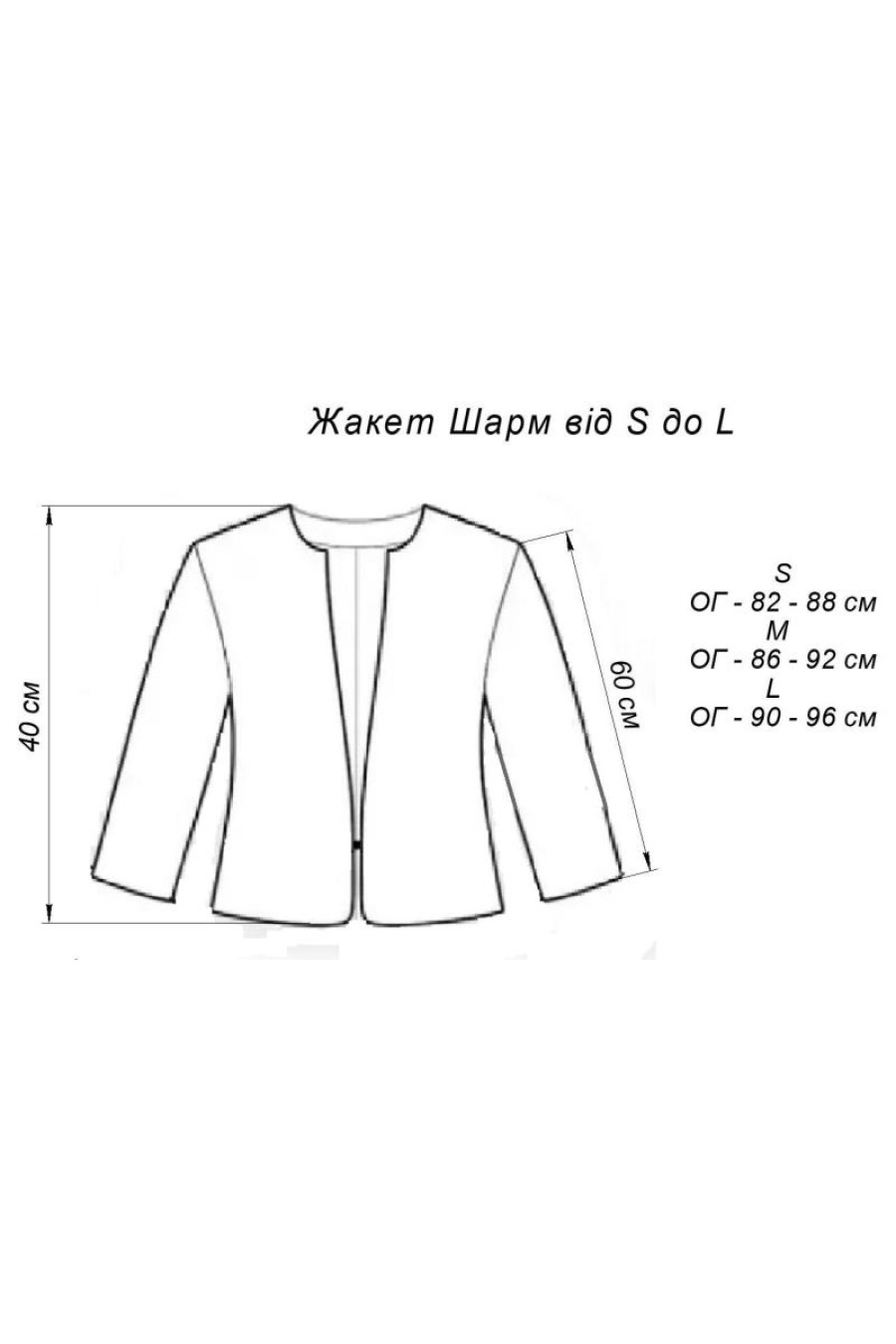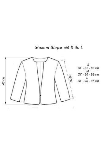 A shortened bolero jacket made of milky-cream coat fabric, which will add freshness and charm to the image. The outfit has a semi-fitted silhouette with a rounded neckline, an elongated shoulder line, spacious long sleeves without cuffs, figured seam lines, a hidden hook fastener, and a matching lining. The jacket will emphasize the fragility and grace of the figure, and will add elegance and sophistication to the image. The outfit can be combined with both a classic sheath dress and business trousers or jeans.