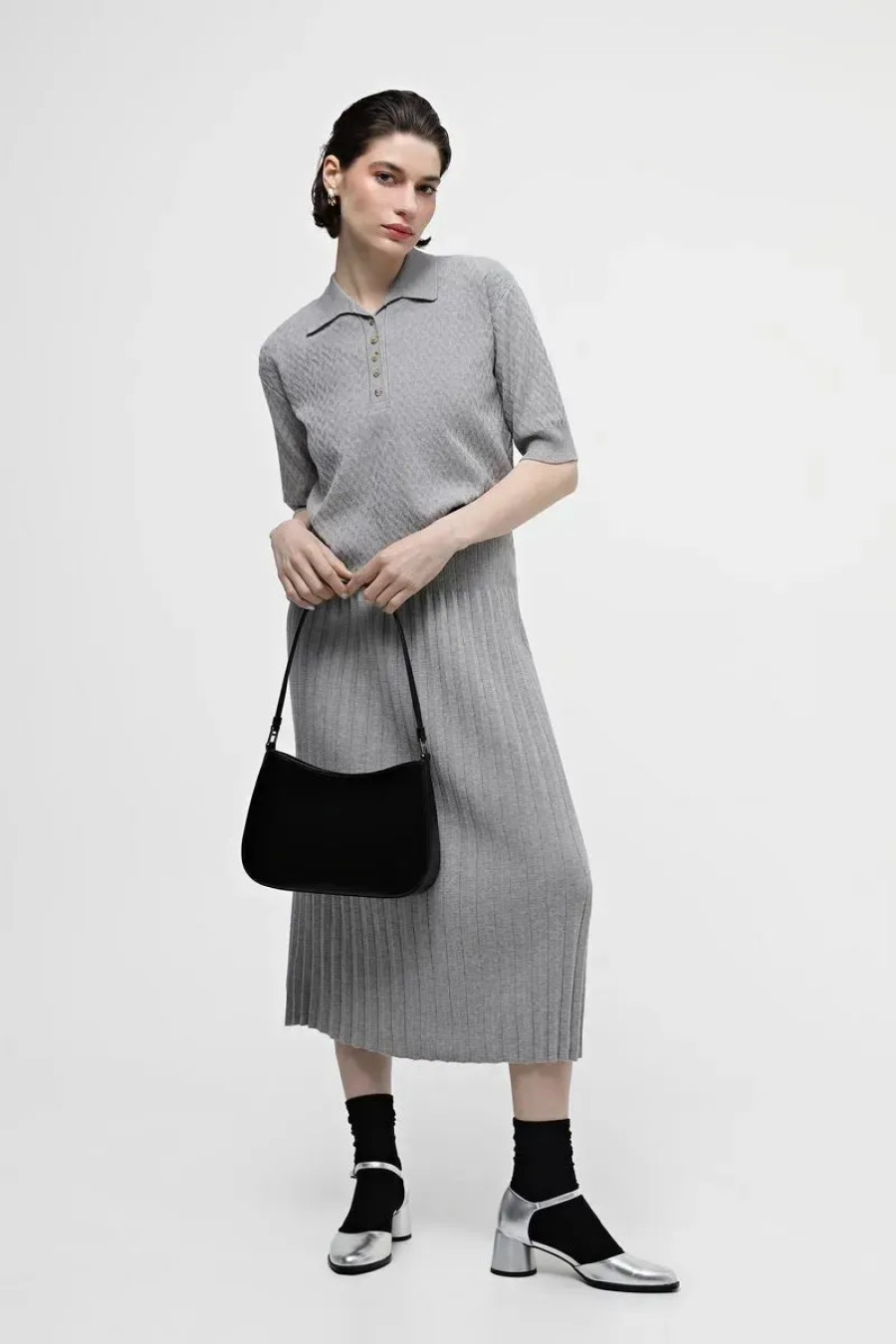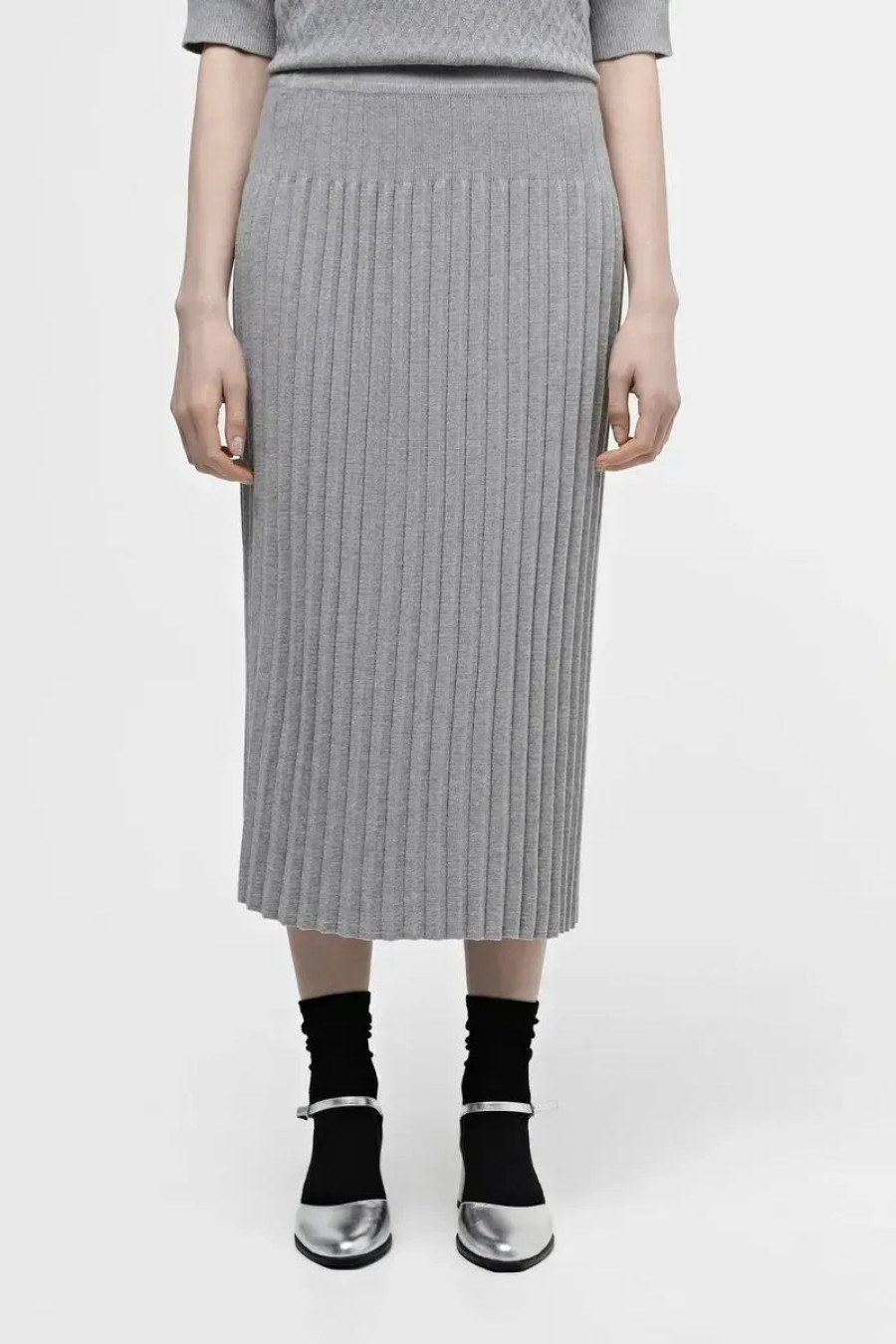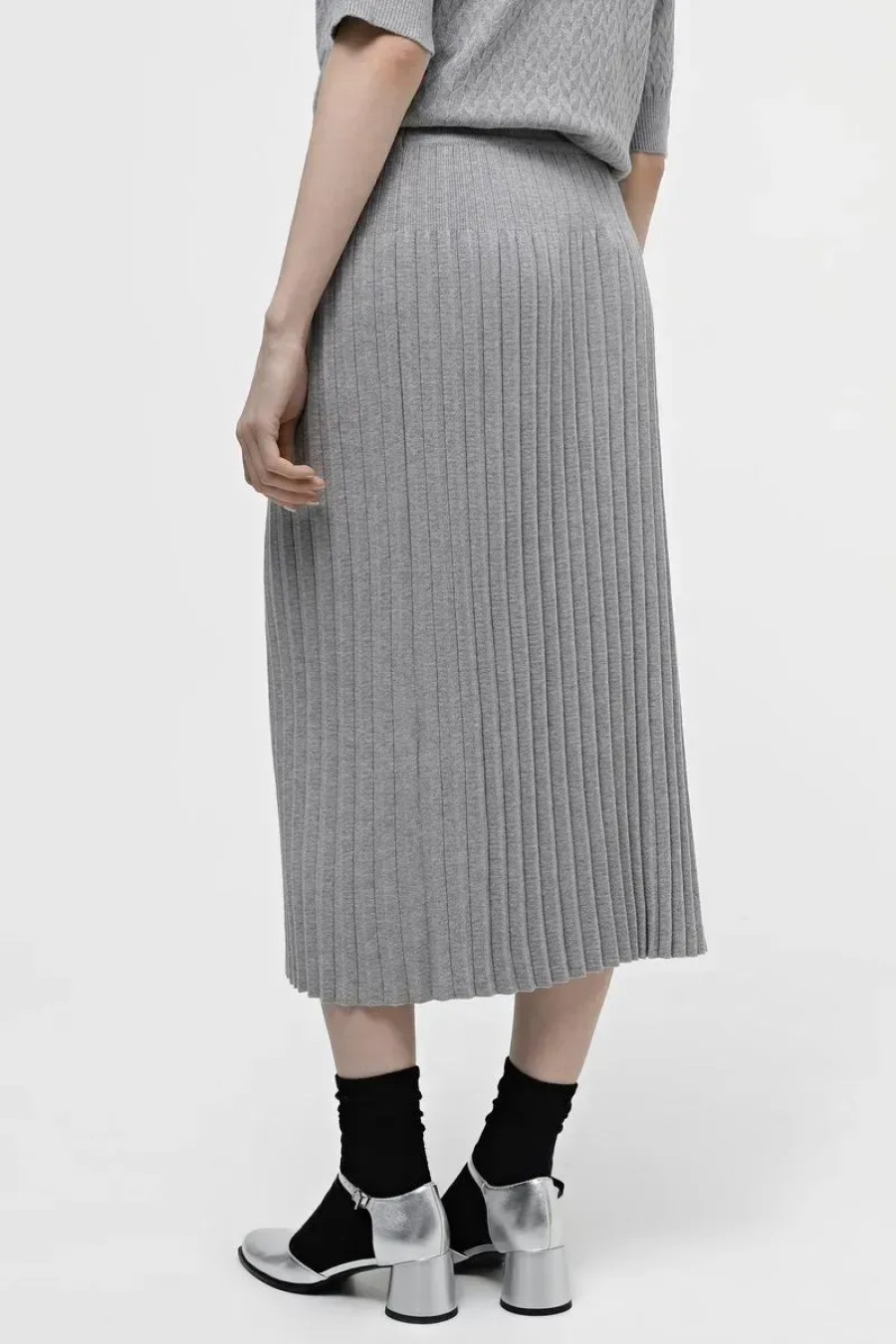 Stretch pleated skirt is an elegant and at the same time very comfortable model that beautifully combines classics and comfort. It has a straight silhouette that visually stretches the figure and makes the image neat and restrained. The material, thanks to the addition of stretch fibers, stretches well and holds its shape well and does not lose its appearance after wearing. This skirt easily fits into both everyday and business or festive wardrobe.