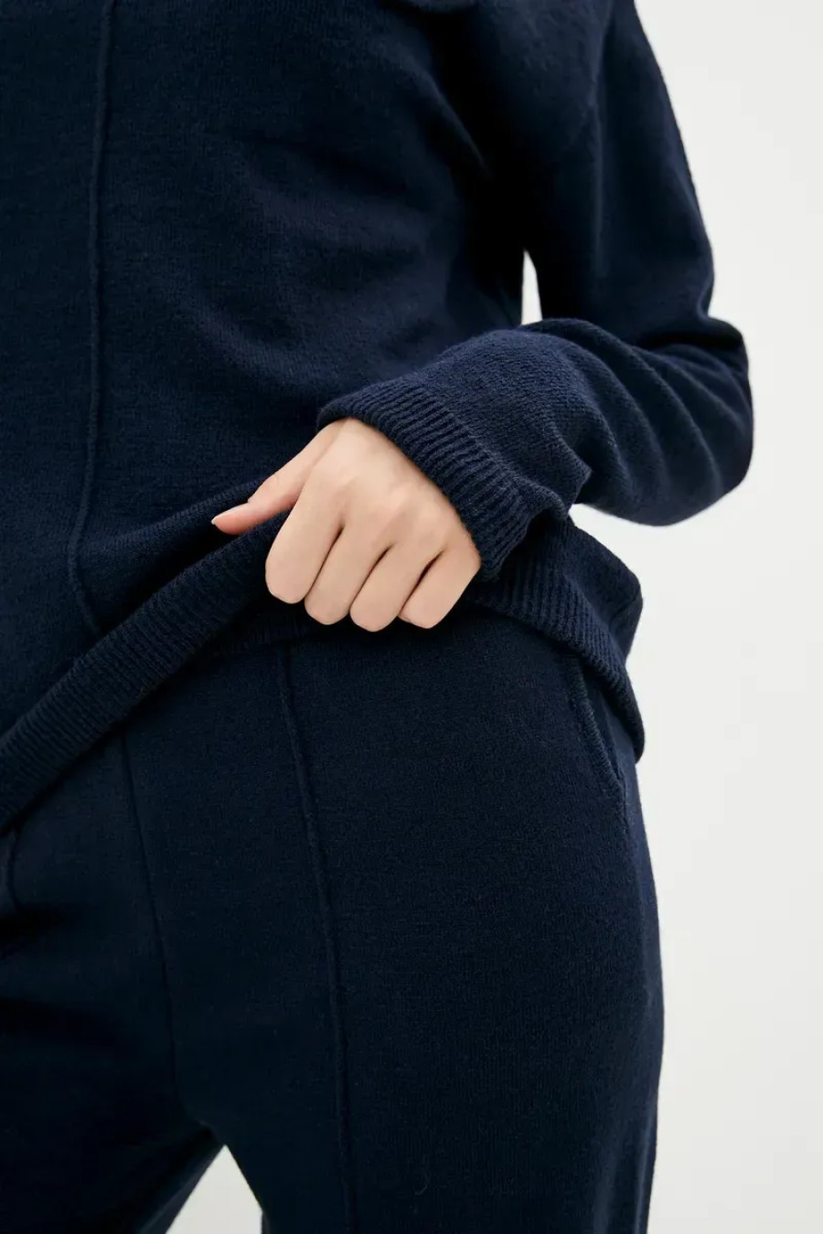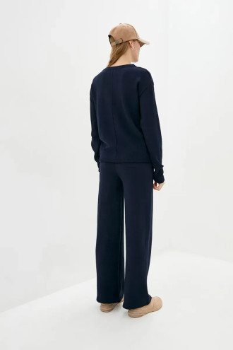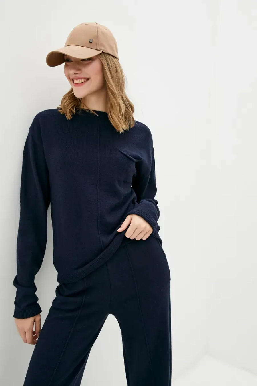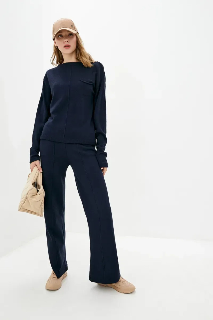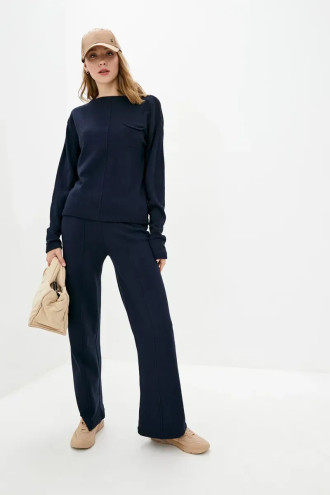 A loose-fitting knitted suit that provides comfort and a modern look. The sweater is made in a comfortable cut that fits comfortably and does not constrain movements. The accent is a decorative pocket on the chest, which adds character to the image and makes the model more expressive and stylish. Straight-cut trousers provide comfort throughout the day and keep their shape well. They have neat knitted pockets on the back and front. Ideal for the cool season.