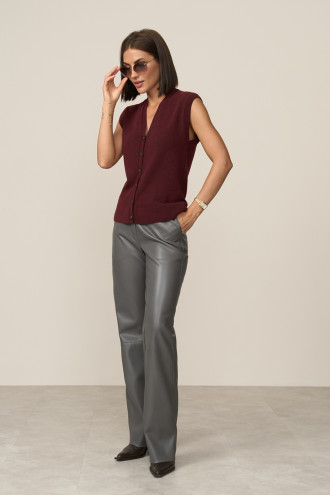 Stylish demi-season pants in gray made of eco-leather, with a suede texture on the inside. Straight-cut model, sewn-in belt, button closure and hidden zipper. Perfectly combined with shirts, sweaters or jackets to create a spectacular everyday or evening look.