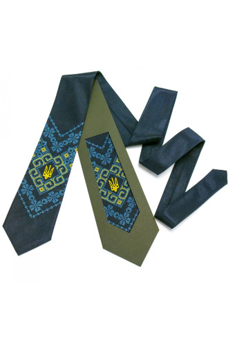 Галстук с тризубом Мирослав из костюмной ткани с вышивкой – это оригинальный украинский сувенир и отличный подарок. У каждого современного делового человека в гардеробе должен быть хоть один такой.