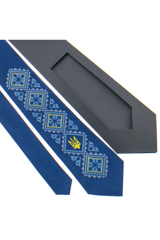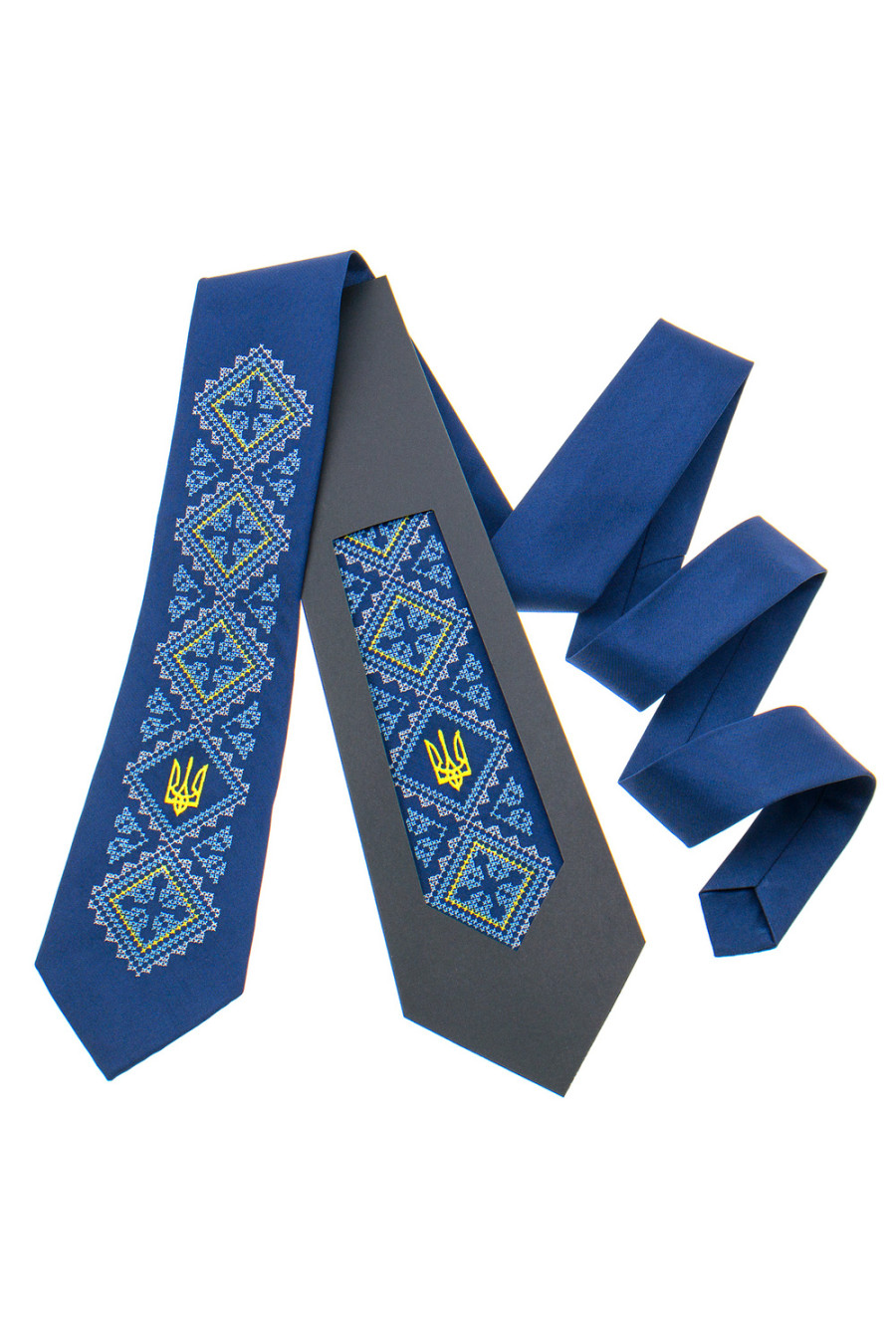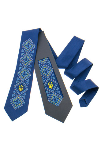 Галстук «Родина» из матового сатина с вышивкой - это оригинальный украинский сувенир и отличный подарок. У каждого современного делового человека в гардеробе должен быть хоть один такой. На синем фоне красиво выглядит качественный орнамент, вышитый голубыми, белыми и желтыми нитками.