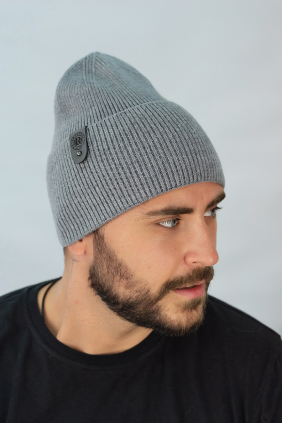 Серо-графитовая демисезонная однослойная вязаная шапка-колпак из приятной на ощупь смессовой пряжи с узором-резинкой, которая будет уместна в гардеробе любого мужчины. Модель классического фасона без подкладки с широким отворотом-резинкой и небольшим брендированным лейбом-декором. Шапка украсит мужской образ, подарит ощущение тепла в межсезонье и удачно сочетается с разнообразными вариантами верхней одежды из вашего гардероба.