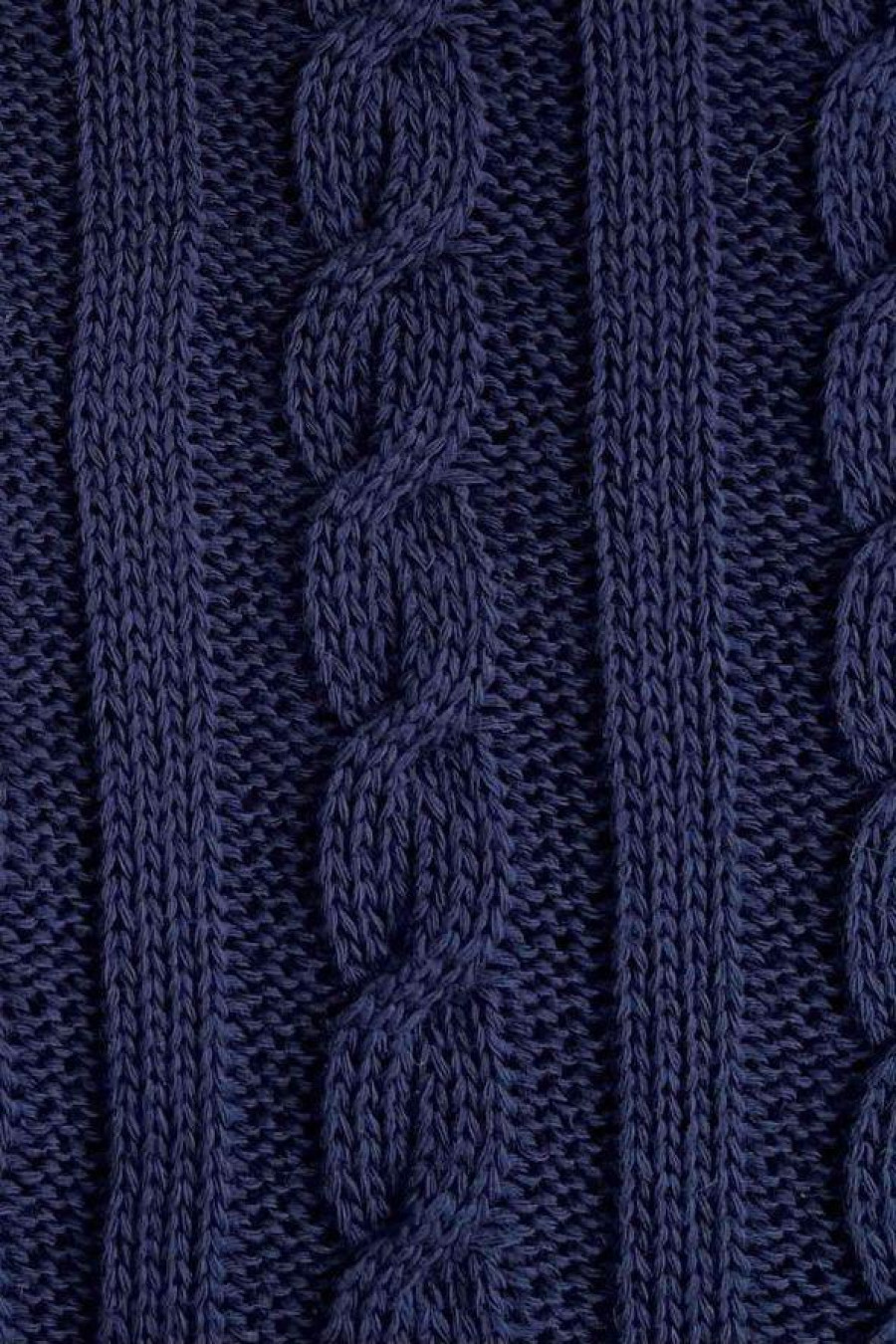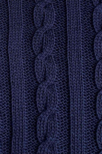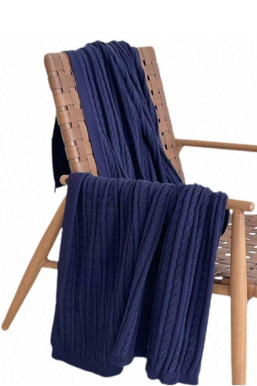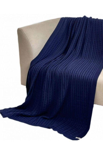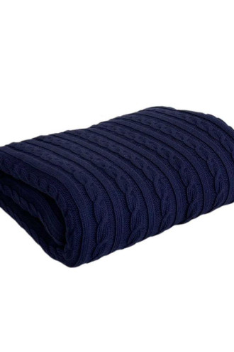 Теплый вязаный плед-покрывало из натуральной хлопковой пряжи чернильно-синего цвета с объемным узором-косами. Изделие дополнит интерьер, придаст ему стильность и неповторимость. В плед можно не только удобно закутаться в холодную пору или для релакса после тяжелого дня с горячим напитком и интересной книгой или фильмом, но и застелить им вашу кровать или диван. Изделие прекрасно подойдет как подарок к любому празднику или торжественному событию.