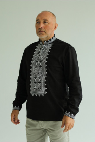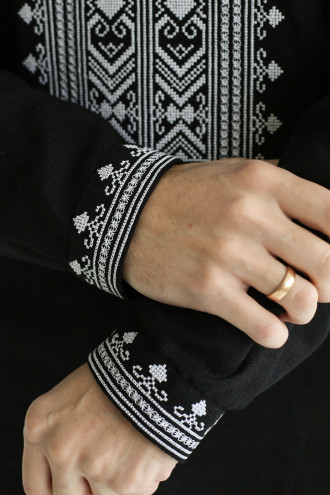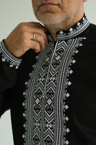 Часто задаваемые вопросы к товару Мужская вышиванка «Боян» черного цвета с белым орнаментом: