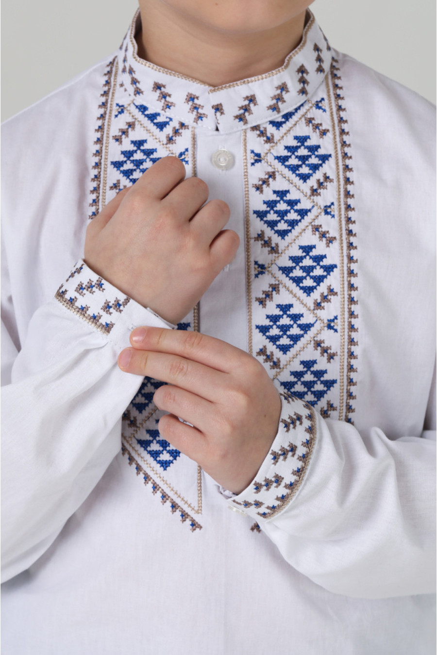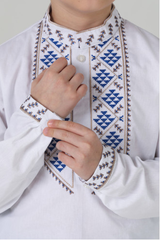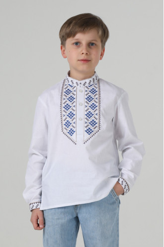 Часто задаваемые вопросы к товару Вышиванка для мальчика «Грона» белого цвета с синим орнаментом: