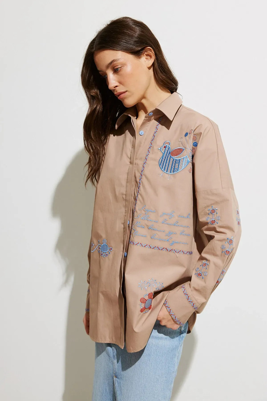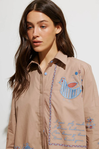 Часто задаваемые вопросы к товару Рубашка «Українська пава» коричневого цвета с голубой вышивкой: