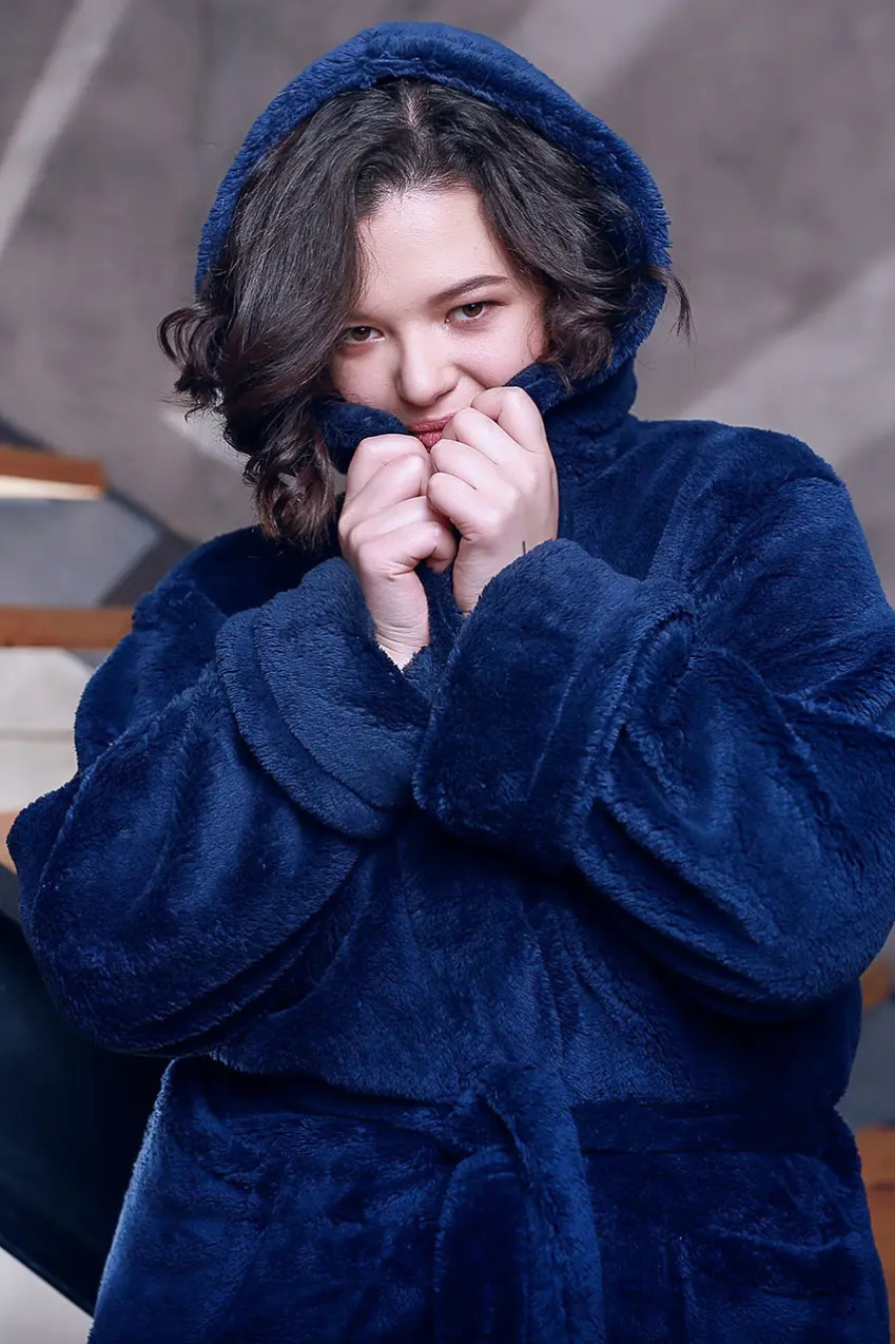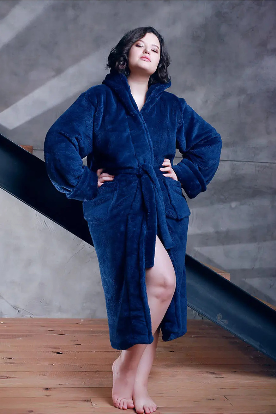 Уютный домашний халат «Констанс» темно-сильного цвета изготовлен из приятного на ощупь велсофта. Модель сшита в свободном фасоне на широкий запах. Украшена удобным капюшоном, который плавно переходит в воротник. Предусмотрен съемный пояс и два накладных глубоких кармана. Рукав втачен со спущенным плечом. Его длина регулируется отворотом. Дело пригодится как для домашнего отдыха, так и для досуга в бане.