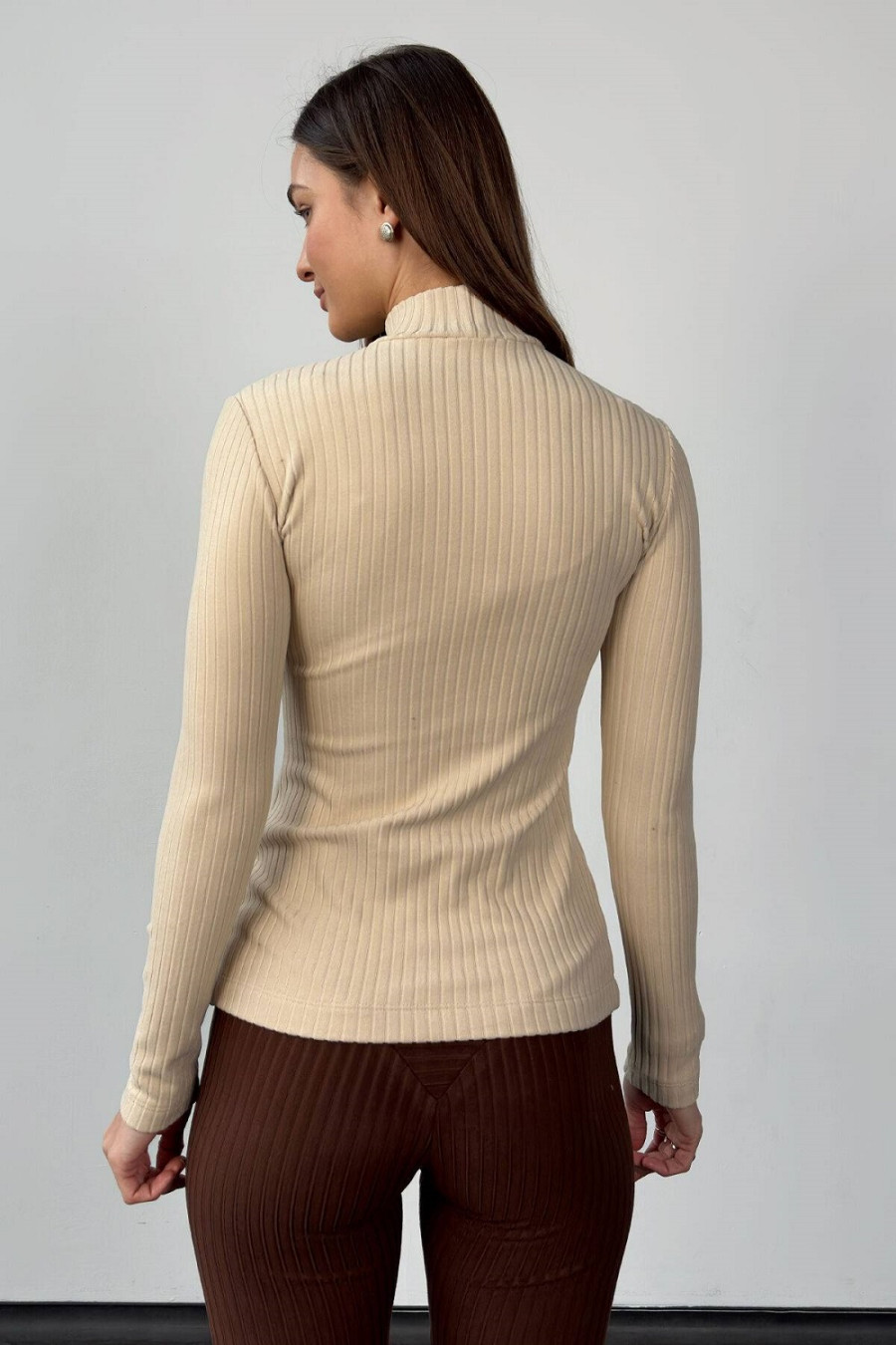 Классический гольф «Баллада» бежевого цвета изготовлен из мягкой трикотажной ткани в рубчик. Имеет прямой приталенный силуэт и длинный втачный рукав. Горловина прилегающая к середине шеи высотой. Ткань приятна к телу и неприхотлива в уходе. Гольф хорошо дополнит базовый гардероб как для классического стиля, так и для кэжуала.