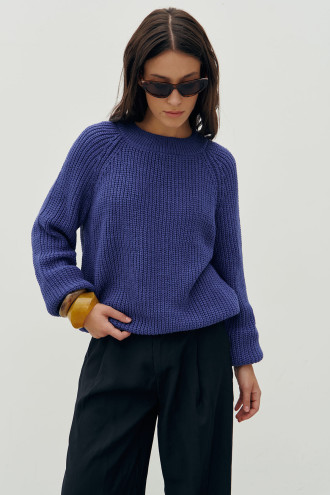Комфортный вязаный демисезонный свитшот из смессовой теплой пряжи темно-голубого цвета с узором-резинкой, который придаст образу загадочность. Модель свободного фасона с округлой горловиной с резинкой-бейкой, длинными просторными рукавами-реглан с манжетами-резинками, манжетой на подоле. Свитшот придаст образу стильность и шарм, подчеркнет хрупкость и женственность силуэта. Наряд можно дополнить и офисными брюками или юбкой, и джинсами или спортивными брюками.