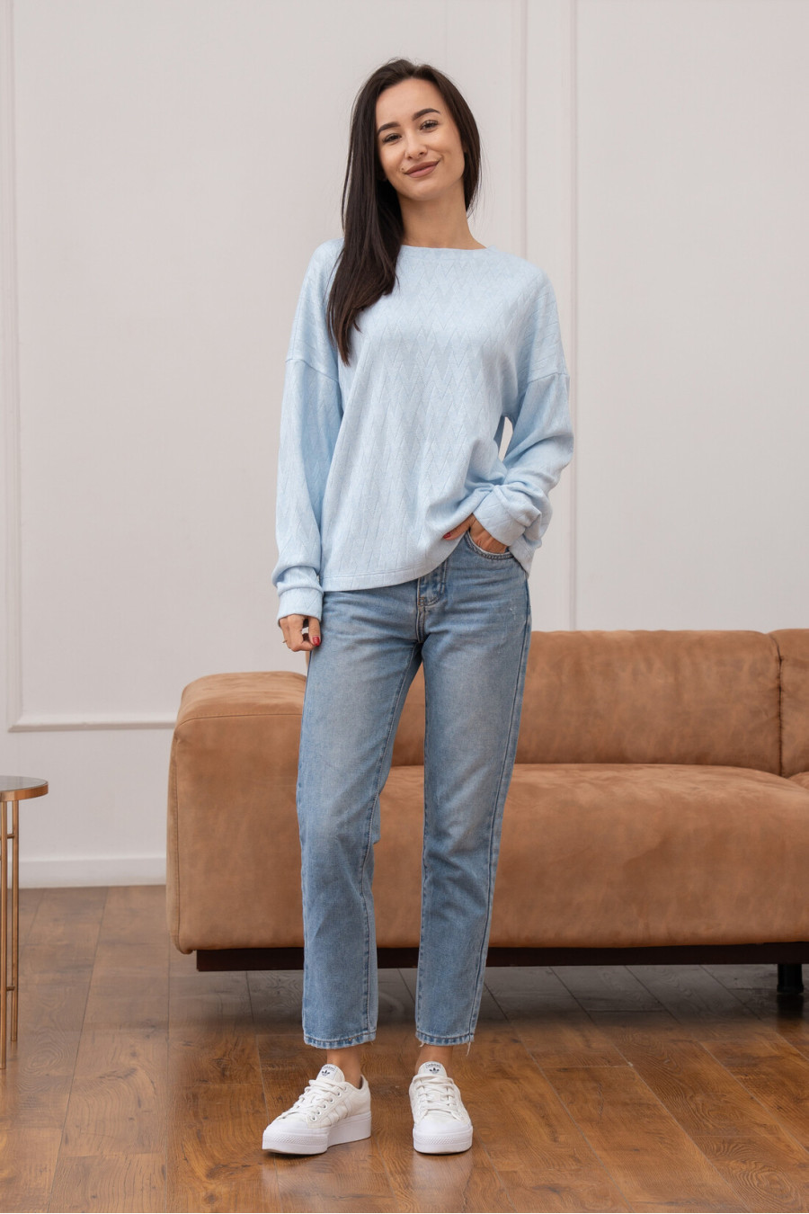 Демисезонный свитшот из приятного к телу трикотажа Джерси-жаккард, который подарит ощущение комфортного тепла. Материал приятен к телу, хорошо тянется, не сковывает движений и хорошо держит форму. Модель свободного кроя, круглой горловиной, приспущенной линией плеча, длинными рукавами с манжетами. Наряды можно сочетать с джинсами, брюками или юбками, отлично подходит для повседневных образов.