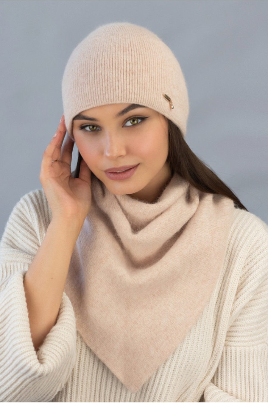 Часто задаваемые вопросы к товару Комплект «Кьяра» (шапка и косынка) кремового цвета: