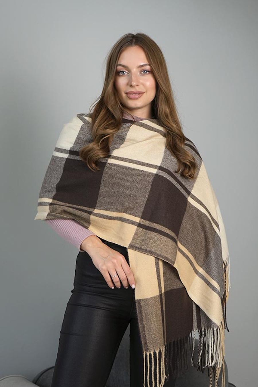 Кашемировый палантин «Лацио» – это сочетание необычайной нежности и изысканности. Такой палантин станет универсальным аксессуаром – его можно накинуть поверх пальто, платья или свитера. Сочетание бежевого и коричневого цвета в классической клеточке придает образу утонченности. Будет уместным как к повседневному образу, так и к вечернему выходу, подчеркивая хороший вкус своей обладательницы.