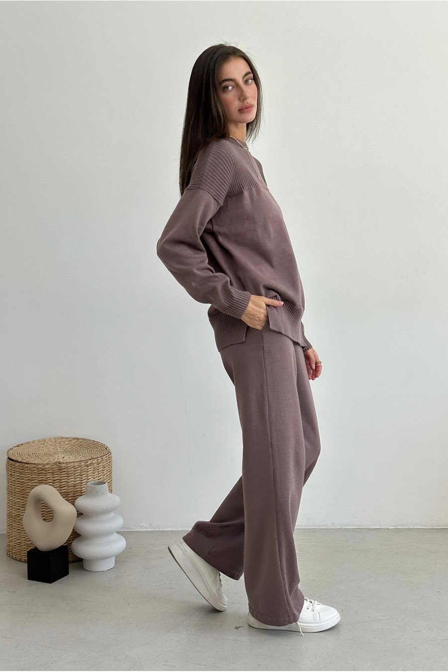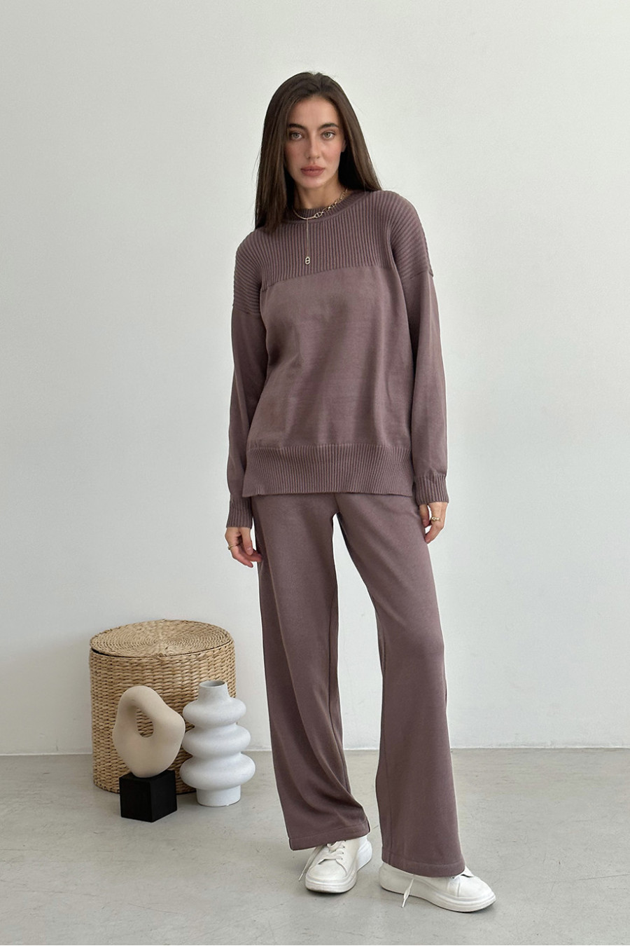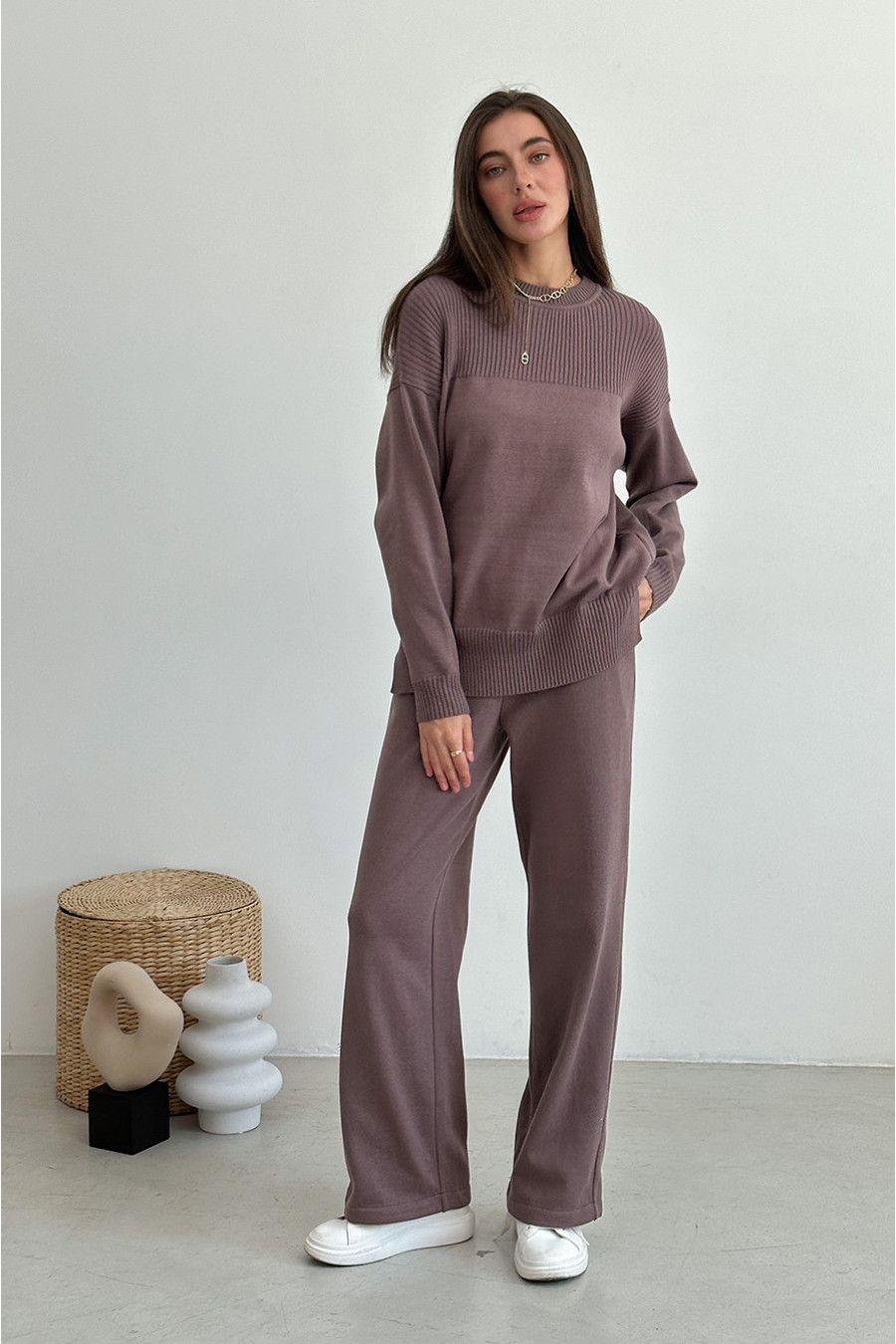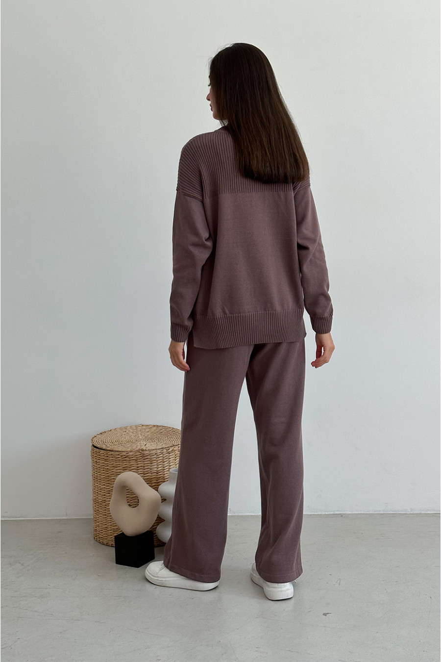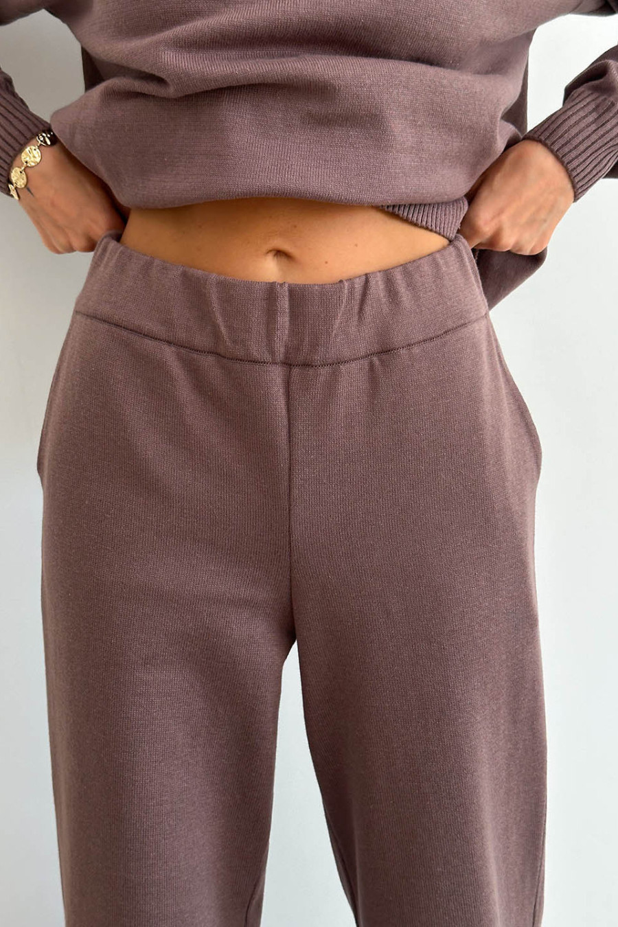 Комфортные повседневные демисезонные вязаные штаны из смессовой пряжи цвета молочного шоколада с гладким узором-полотном, которые будут уместны в любом гардеробе. Модель свободного силуэта с широким притачным поясом-резинкой, карманами на уровне бедер, манжетами внизу. Штаны подчеркнут стройность и плавность форм, придадут повседневному образу элегантность и шарм. Наряд удачно сочетается не только с одноименным джемпером, но и с теплыми рубашками или свитерами из вашего гардероба.