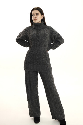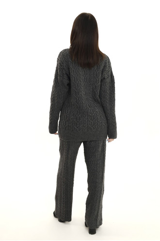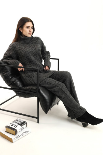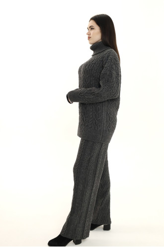 Комфортные темно-графитовые удлиненные вязаные штаны из смессовой пряжи с объемным узором-косами и переплетениями, которые подарят ощущение свободы движения и приятного тепла. Модель свободного фасона с высокой посадкой, широким притачным поясом-резинкой. Штаны визуально удлинят силуэт, подчеркнут стройность и хрупкость форм. Наряд можно дополнить как одноименным свитером, так и свитшотом или туникой из вашего гардероба.