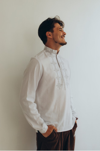 Найчастіші запитання до товару Чоловіча вишиванка «Зореслав» білого кольору:
