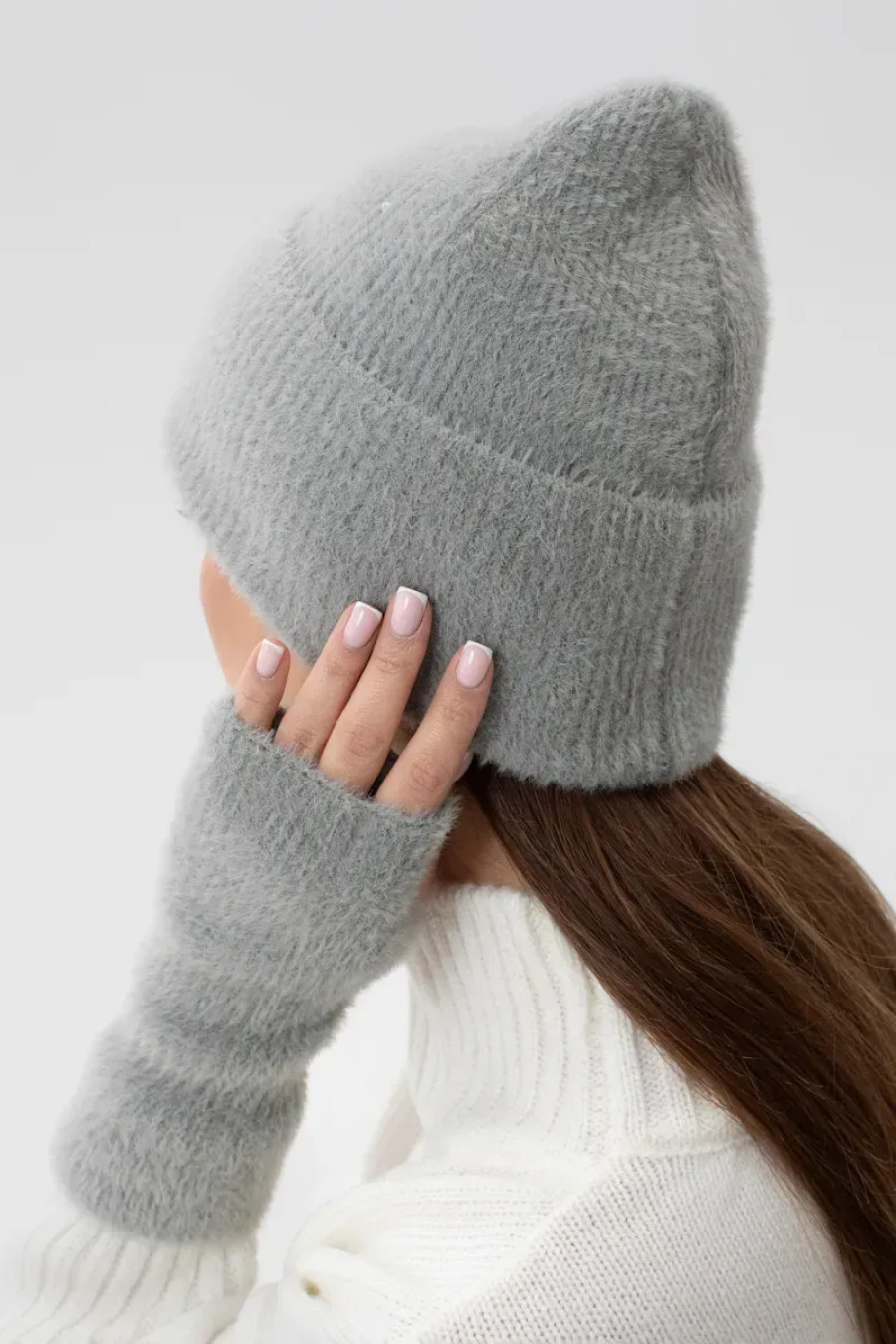 В'язаний комплект «Вірджинія» - стильний та практичний варіант для холодної пори року. Шапка добре тримає форму та щільно прилягає, забезпечуючи комфорт і тепло. Акуратний відворот додає об'єму й захищає вуха від вітру та холоду. Мітенки доповнюють комплект, залишаючи пальці вільними для зручності у повсякденних справах.