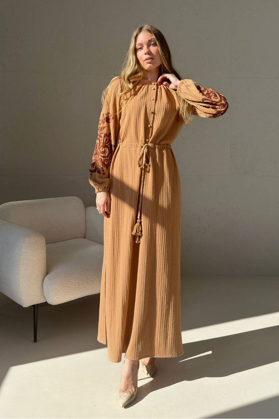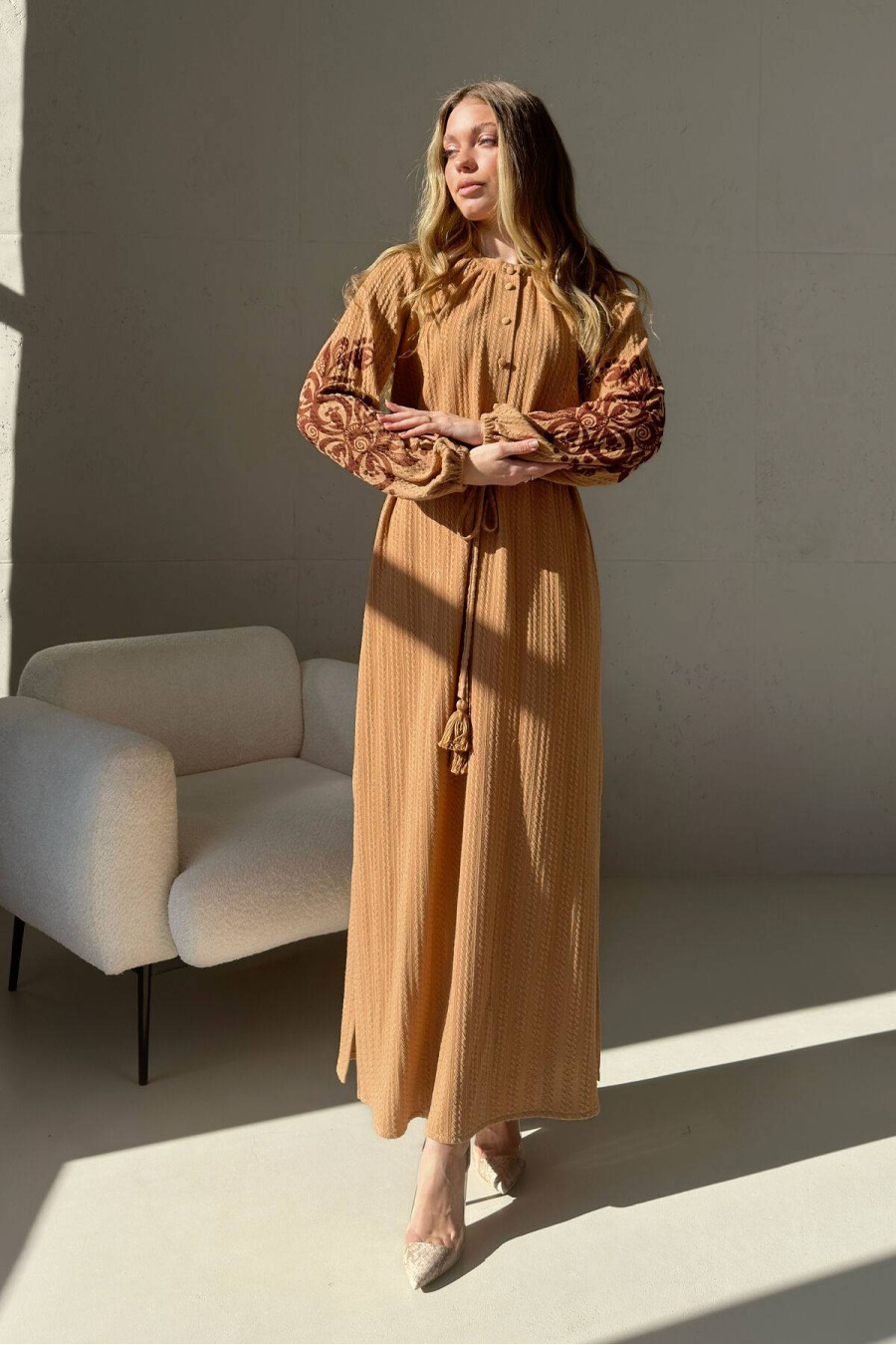 Найчастіші запитання до товару Сукня «Галатея» охрового кольору: