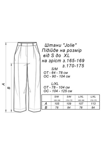 - Довжина внутрішнього шва штанів: від паху до щиколотки.